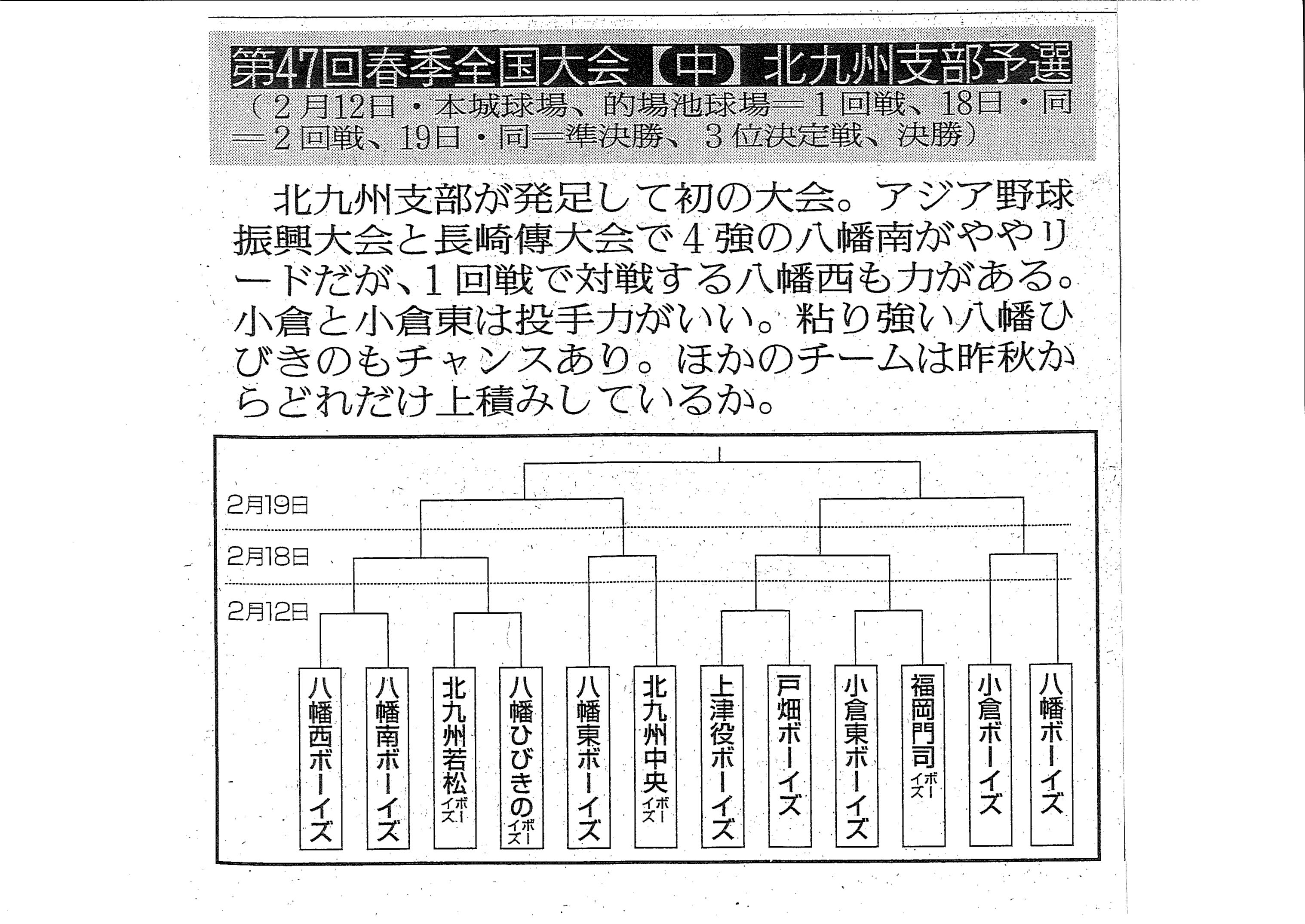 1/28 春季全国大会予選 記事 1月28日 スポーツ報知 新聞に記事が掲載されました。 By admin | 2017/01/31 | インフォメーション | ← 1/29 設立総会 2/4 練習試合 九州古賀ボーイズ →