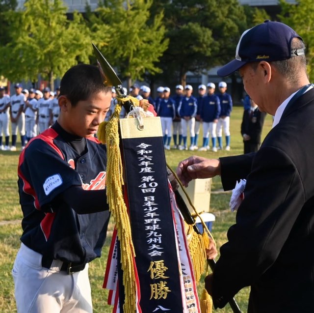 第41回日本少年野球九州大会にて昨年、先輩方が優勝した九州大会の優勝旗を返還しました。