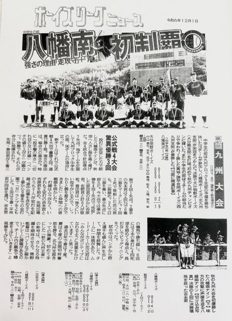 12/1 〔八幡南B〕ボーイズリーグニュースに掲載されました‼︎ 2024年12月1日(日) 第40回日本少年野球九州大会の記事が掲載されました。 秋は初の九州チャンピオンを獲ることができました。 大会の反省を活かし全国大会へ向けて精進して参りますので応援よろしくお願いします。 記事のPDFはこちらです! By webmaster | 2024/12/01 | インフォメーション | ← 11/30 〔八幡南B〕スポーツ報知新聞に掲載されました‼︎ 12/14・15 [八幡南中央B] 第6回日本少年野球本田正記念大会1年生の部 →