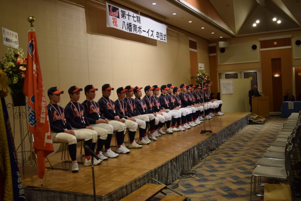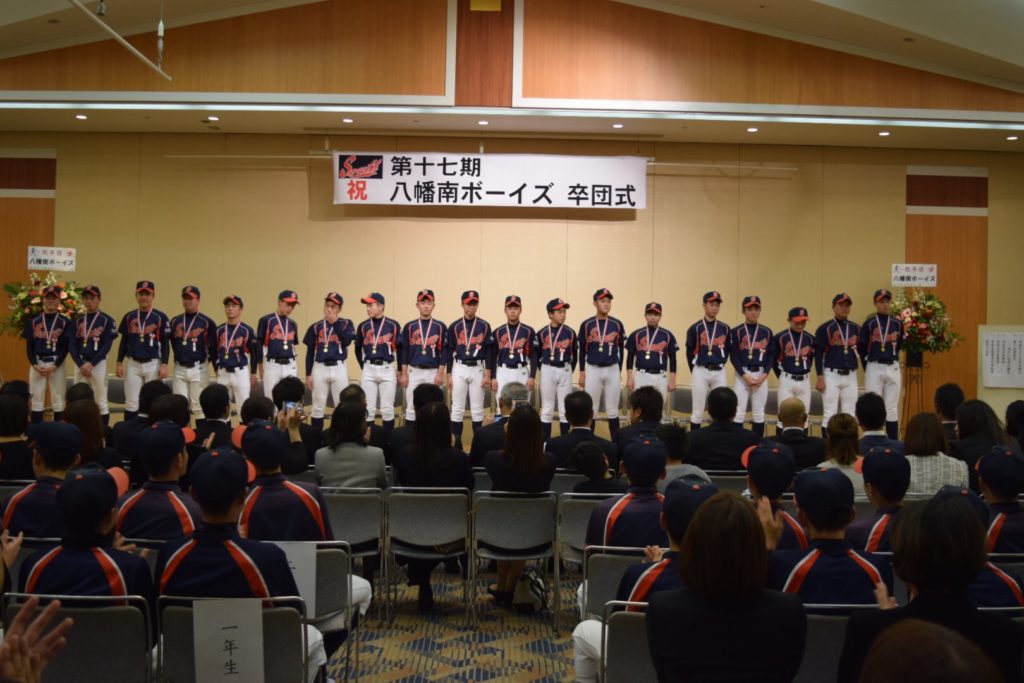 12/16 卒団式 2018年12月16日(日) 八幡南ボーイズ第17期生卒団式が行われました。 第17期生及び保護者の皆様、お疲れさまでした。 皆様の今後のご活躍を心よりお祈り申し上げます。 By admin | 2018/12/16 | 八幡南ボーイズ日記 | ← 12/15 2019年度中学1年生体験練習会 12/16 卒団式懇親会 →