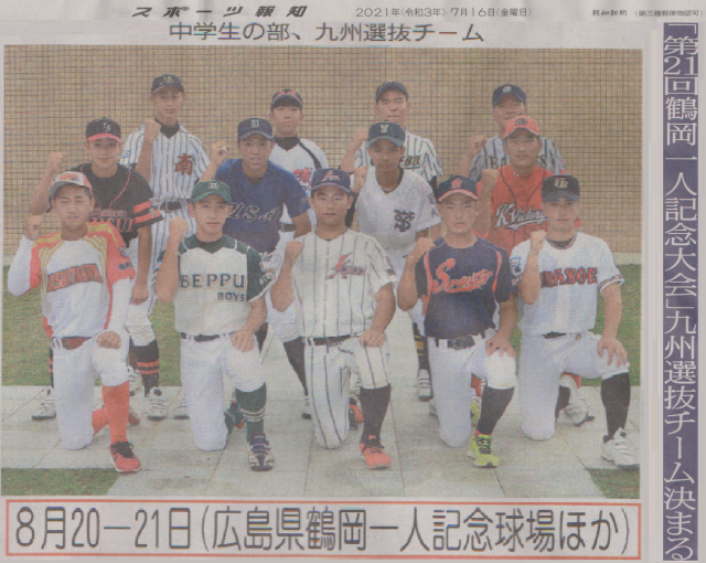 2021第21回鶴岡一人記念大会 九州選抜メンバーに古賀涼太選手が選ばれました。 2021第21回鶴岡一人記念大会 九州選抜メンバーに 八幡南ボーイズ3年主将 古賀涼太選手が選ばれました。 皆様のご声援を宜しくお願いします。 By webmaster | 2021/07/16 | インフォメーション | ← 7/14 差し入れを頂きました。 7/17 練習試合 八幡ボーイズ →