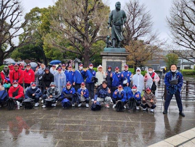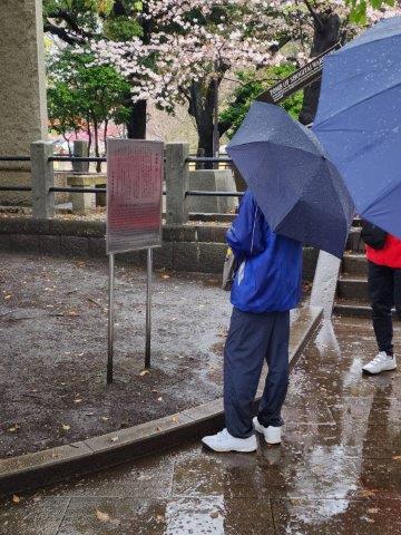 道中、監督にガイドをしていただきながら、皇居へ行ったあとは上野公園で正岡子規記念球場を見学し、長い桜道を通りながら、アメ横へ向かいました。
