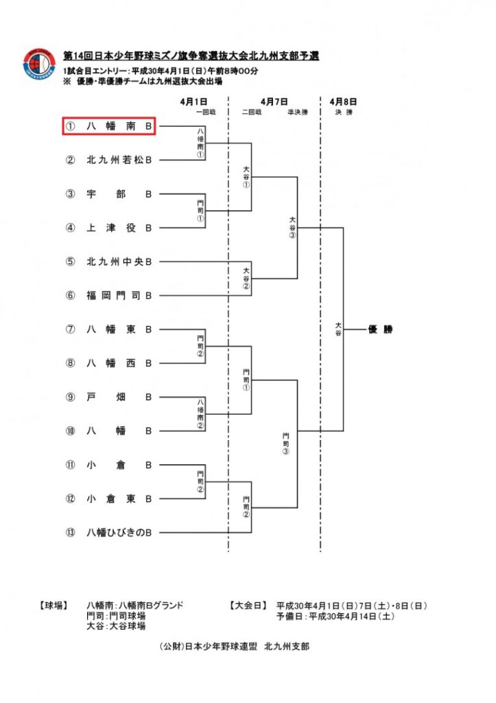 4/1・7・8・9 第14回日本少年野球ミズノ旗争奪九州選抜大会北九州支部予選