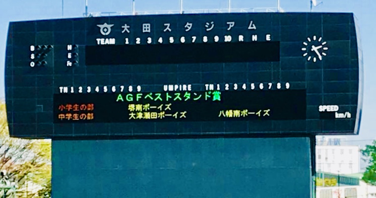 八幡南ボーイズ応援団がベストスタンド賞を受賞しました。