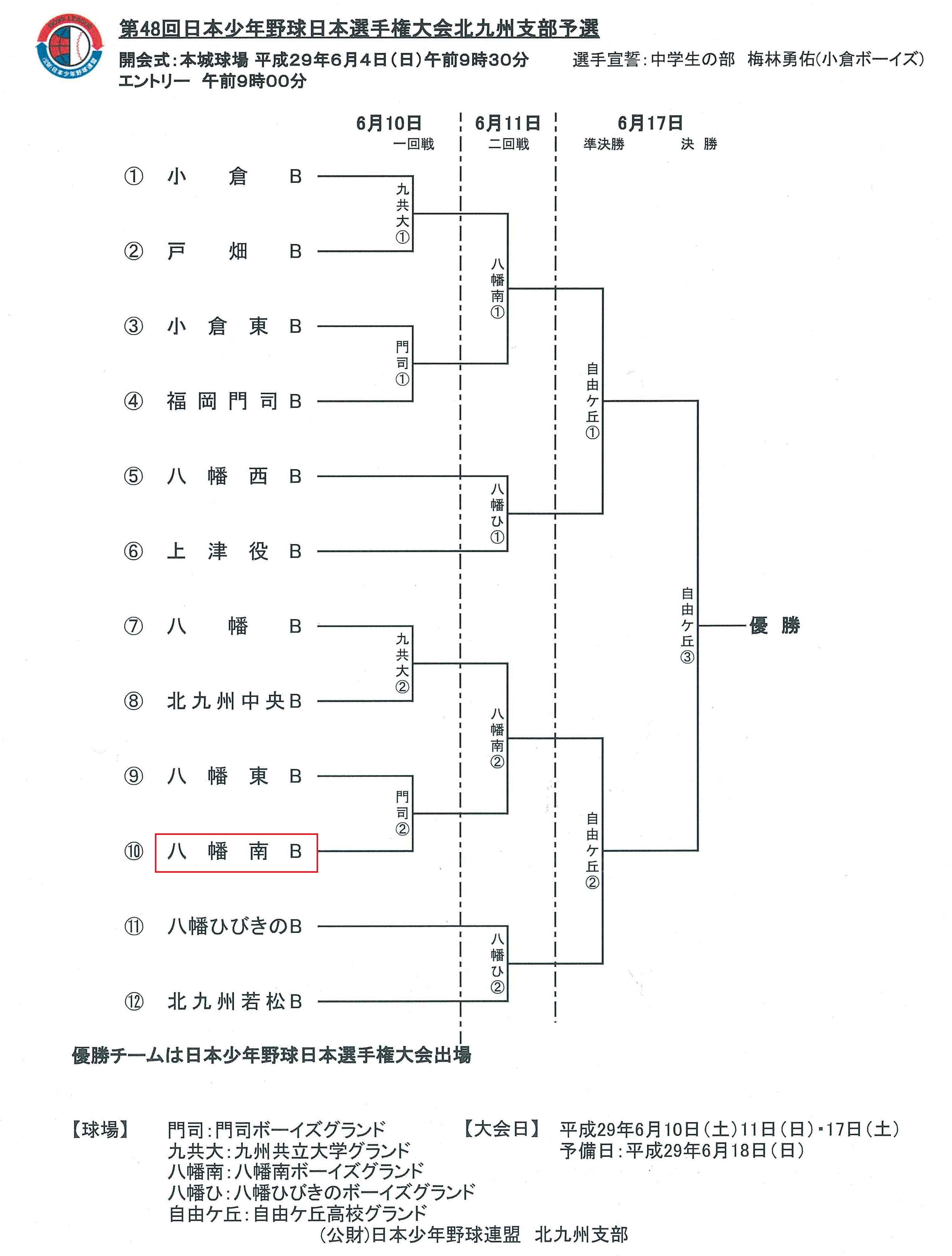 6月10日(土) 門司ボーイズグラウンド(門司区丸山3-1-1 門司高校跡地)にて、