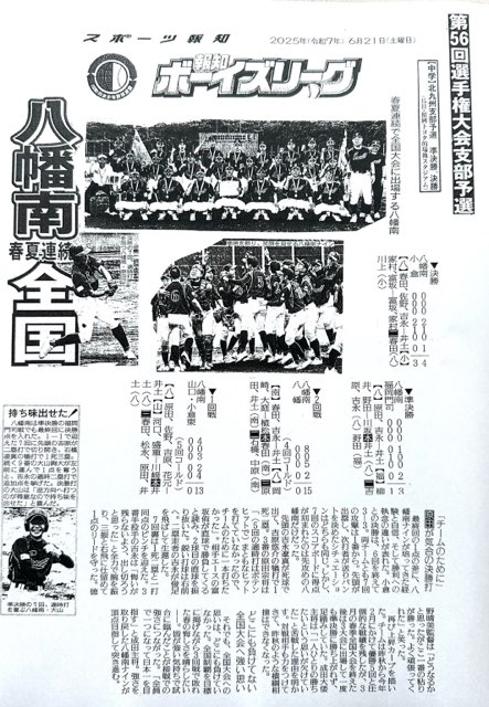 6/21〔八幡南B〕スポーツ報知に掲載されました‼︎