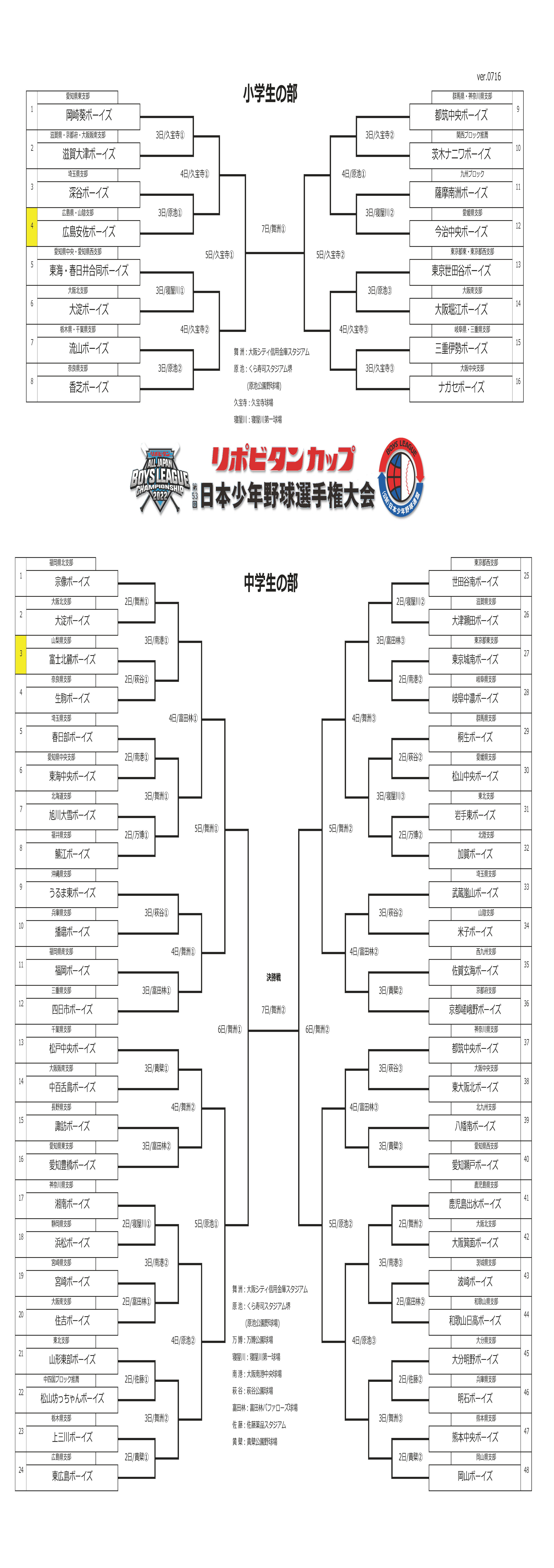 本日、抽選会が行われ第53回日本少年野球選手権大会の初戦の対戦チームが決まりました。