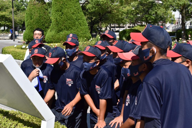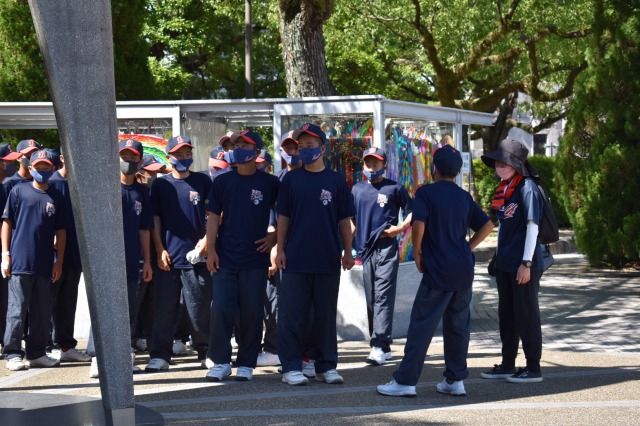 遠征先の広島にて「原爆ドーム」「平和公園」に平和学習に行きました。