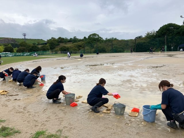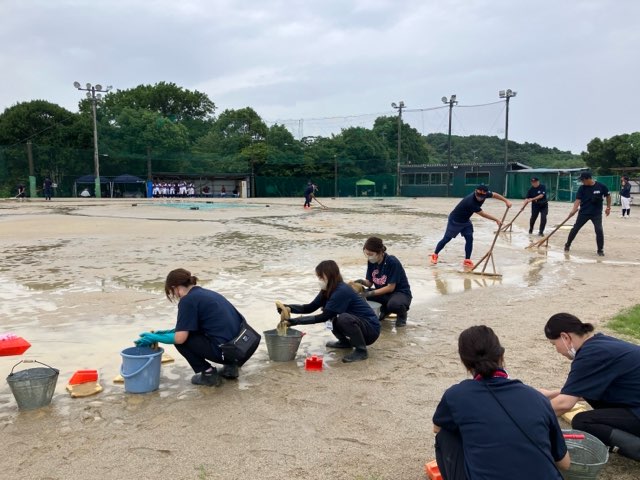 本日の練習試合、降っては止みを繰り返し、3度の水取り作業ののち無事に練習試合をすることができました。お手伝いをしてくださった大分明野ボーイズの皆さん本当にありがとうございました!